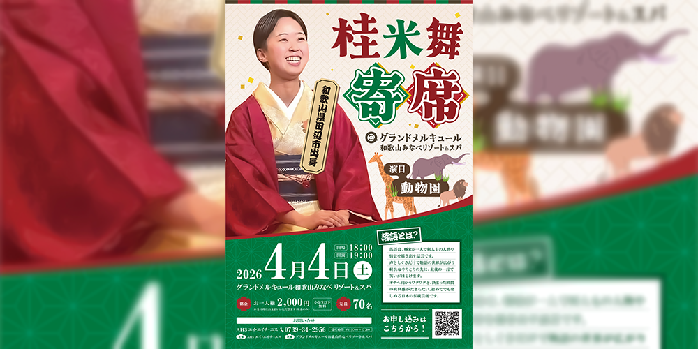 2026年4月4日(土)、桂米舞 寄席 @グランドメルキュール和歌山みなべリゾート&スパ を開催いたします。